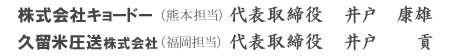 おかげさまで25周年を迎え、平成16年7月に協同圧送㈲から㈱キョードーへ組織・商号変更をいたしました。さらに昨今の建設業の不況打開策として平成16年11月には久留米圧送㈱と経営統合いたしました。その上、江口自動車工業㈱様よりグループ企業の福岡ミニポンプ㈱と提携し、自動車整備部門として民間修理工場並みの整備を独自にすることにより、コスト削減など様々な面で、現在よりもレベルアップしすることができます。これにより”新生”キョードーグループとして、熊本・久留米・佐賀・八女・大牟田近郊など、九州中央・北部での営業エリアをさらに拡大し、積極的な営業でお客様のサポートをさせていただいております。