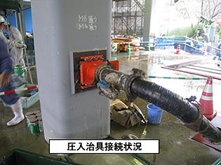圧入圧力により下部より上方へコンクリートを押し上げるので、コンクリートの分離がなく、気泡・豆板・空隙が少ない密実なコンクリートが施工できます。